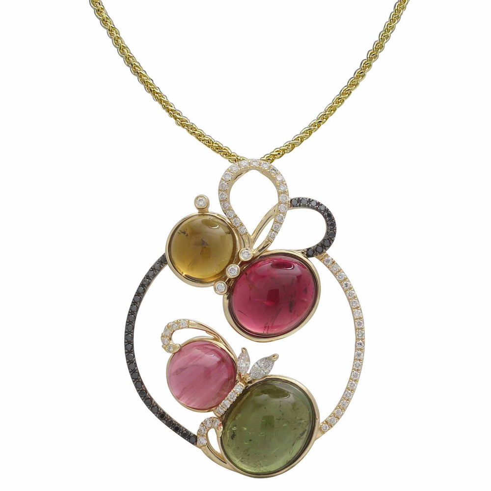 14K YELLOW GOLD DIAMOND AND MULTICOLOR TOURMALINE PENDANT WITH CHAIN