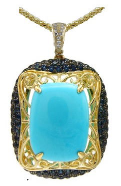 14K YELLOW GOLD SAPPHIRE AND TURQUOISE PENDANT WITH CHAIN