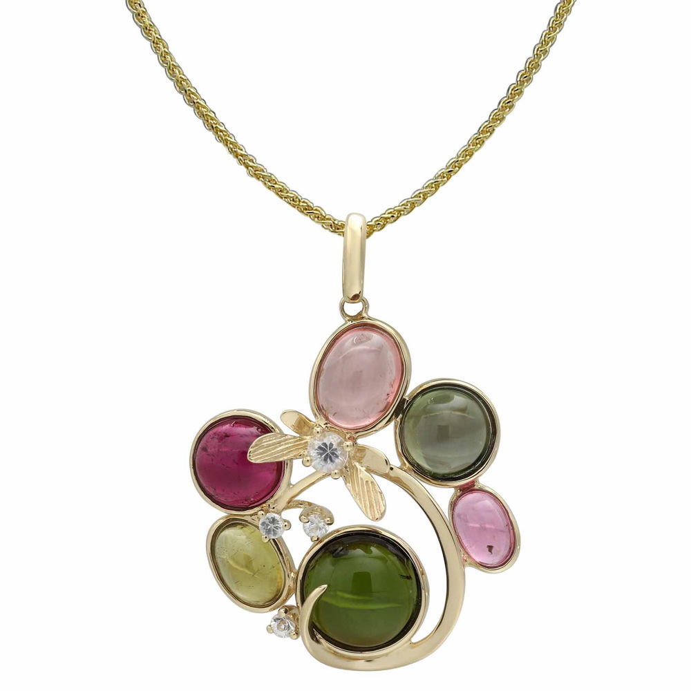 14K YELLOW GOLD WHITE SAPPHIRE AND MULTICOLOR TOURMALINE PENDANT WITH CHAIN