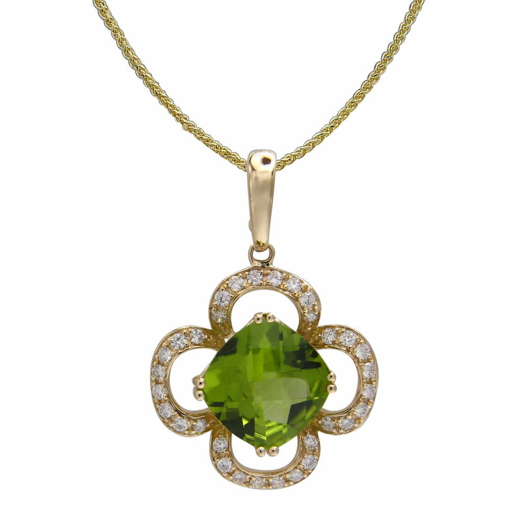 14K YELLOW GOLD DIAMOND AND PERIDOT PENDANT WITH CHAIN