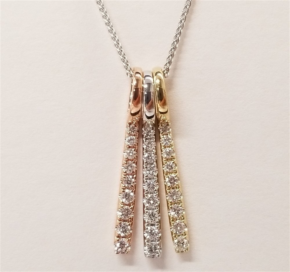 - 14K YELLOW, WHITE AND ROSE GOLD 3 PIECES SET DIAMOND PENDANT WITH YELLOW GOLD CHAIN