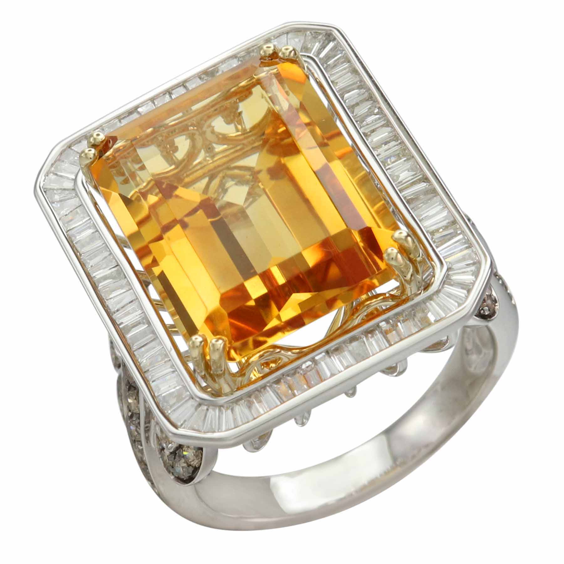 14K YELLOW AND WHITE GOLD DIAMOND, BROWN DIAMOND AND CITRINE RING