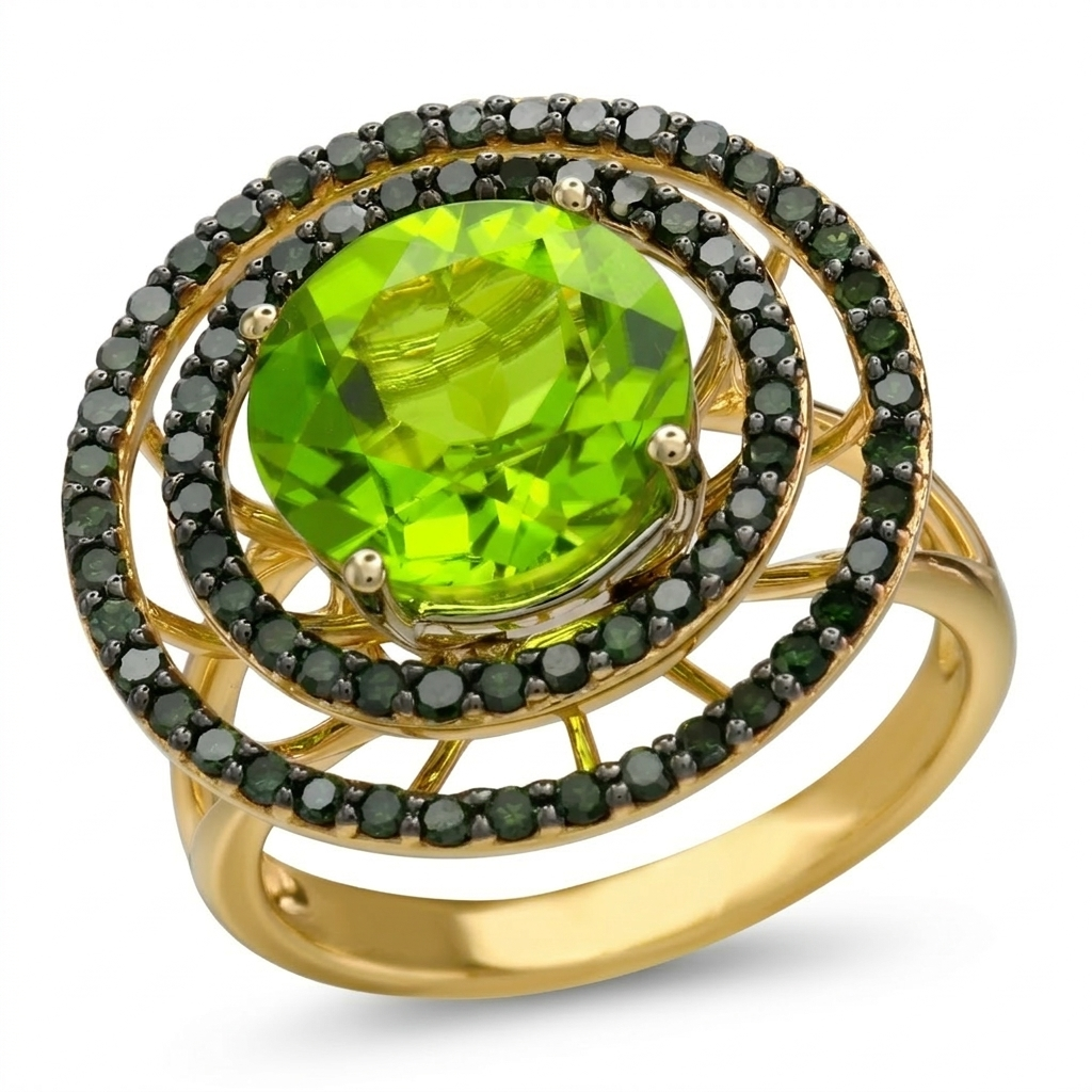 14K YELLOW AND WHITE GOLD TREATED GREEN DIAMOND AND PERIDOT RING