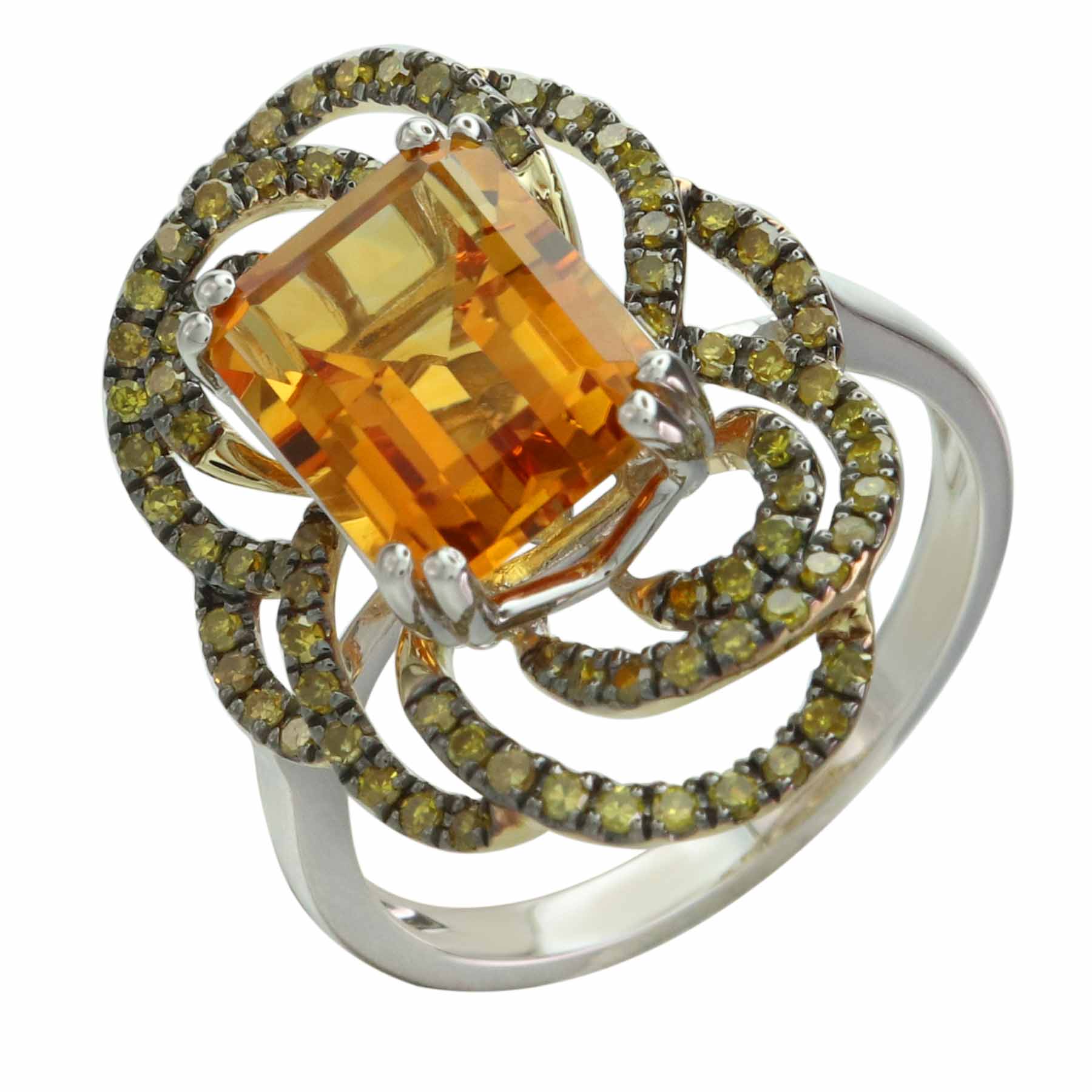 14K YELLOW AND WHITE GOLD TREATED YELLOW DIAMOND AND CITRINE RING