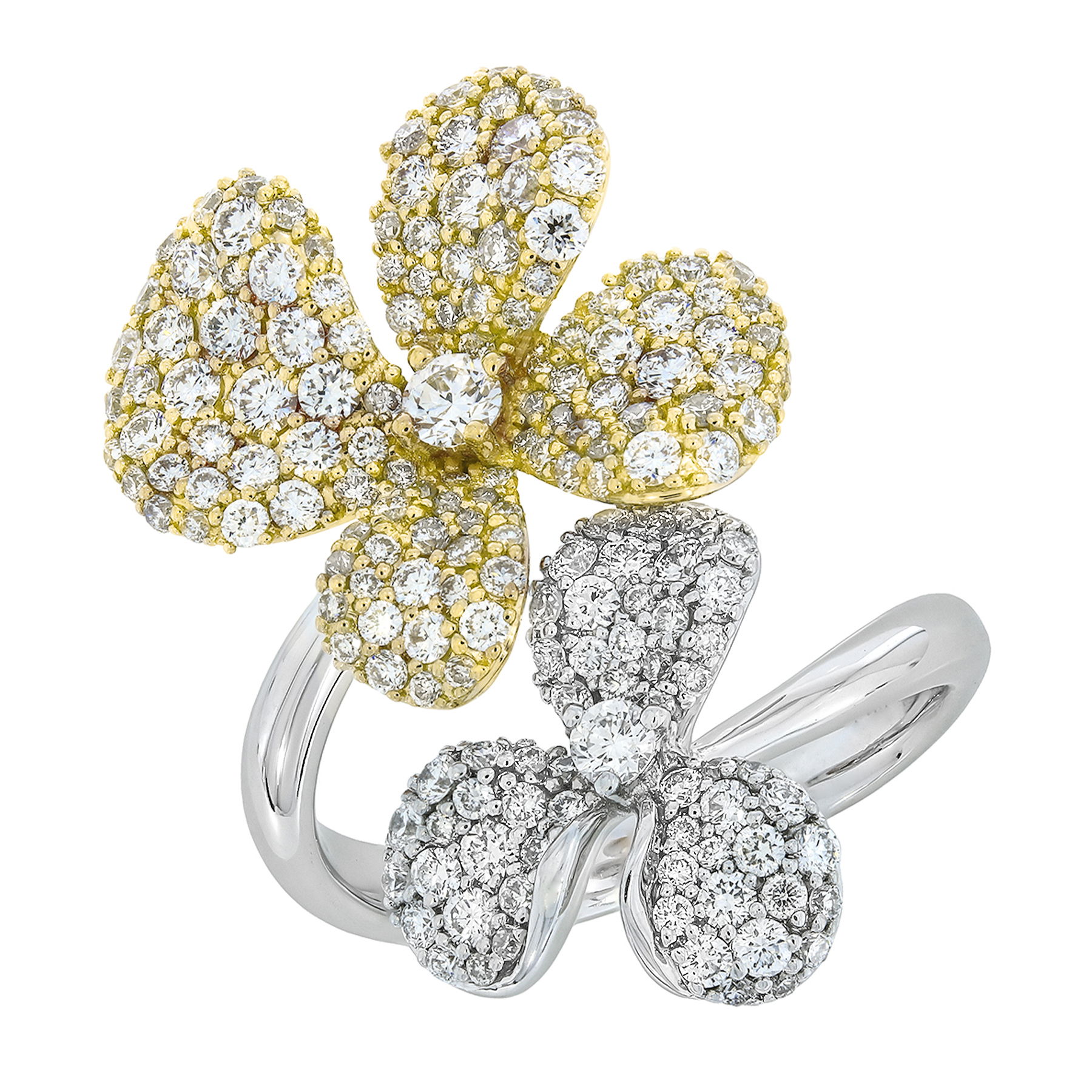 14K YELLOW AND WHITE GOLD DIAMOND FLOWER RING