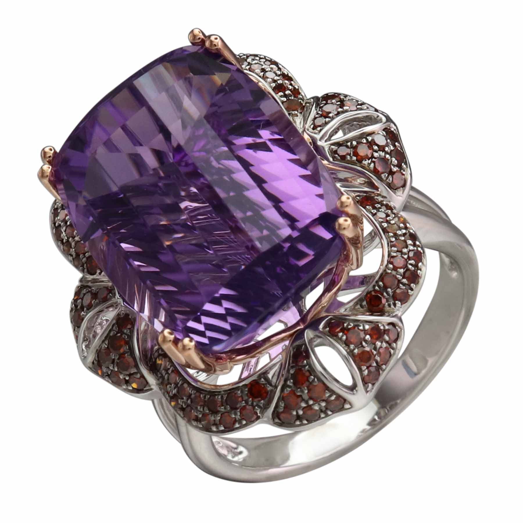 14K WHITE AND ROSE GOLD TREATED RED DIAMOND AND AMETHYST RING