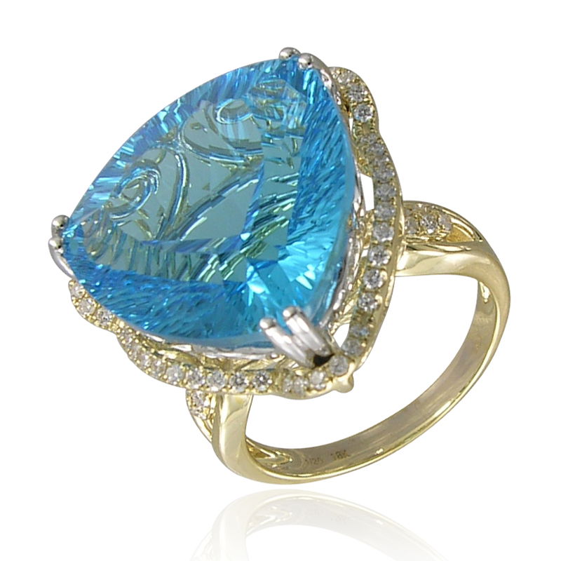 18K YELLOW AND WHITE GOLD DIAMOND AND SWISS BLUE TOPAZ RING
