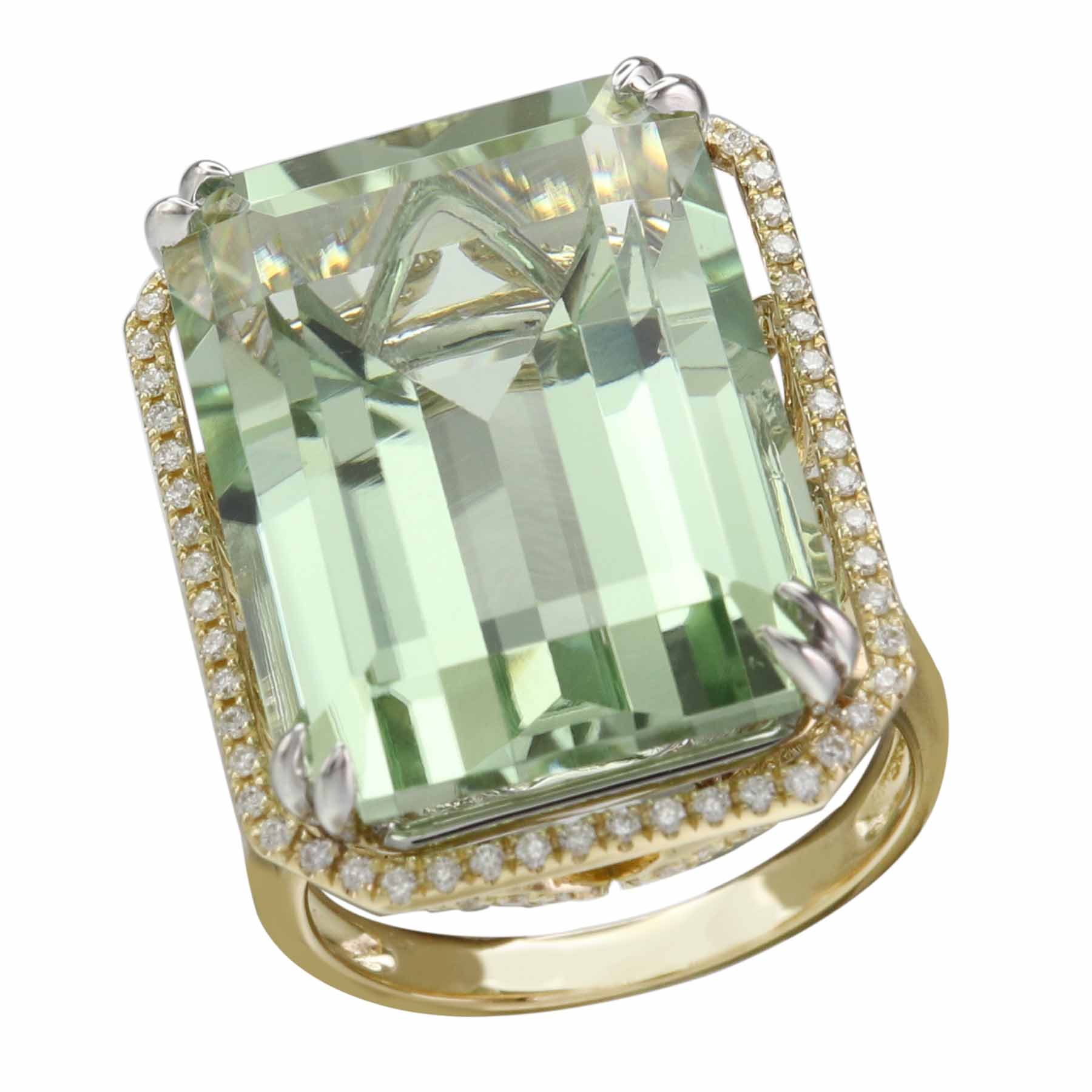 18K YELLOW AND WHITE GOLD DIAMOND AND GREEN AMETHYST RING