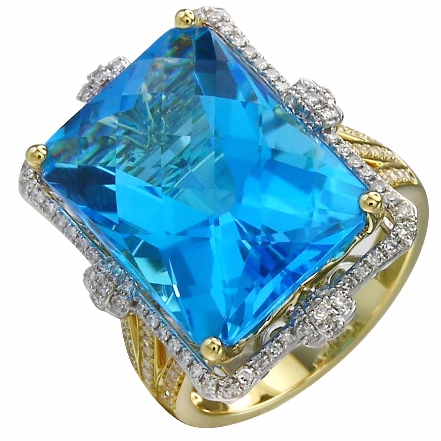 18K YELLOW AND WHITE GOLD DIAMOND AND SWISS BLUE TOPAZ RING