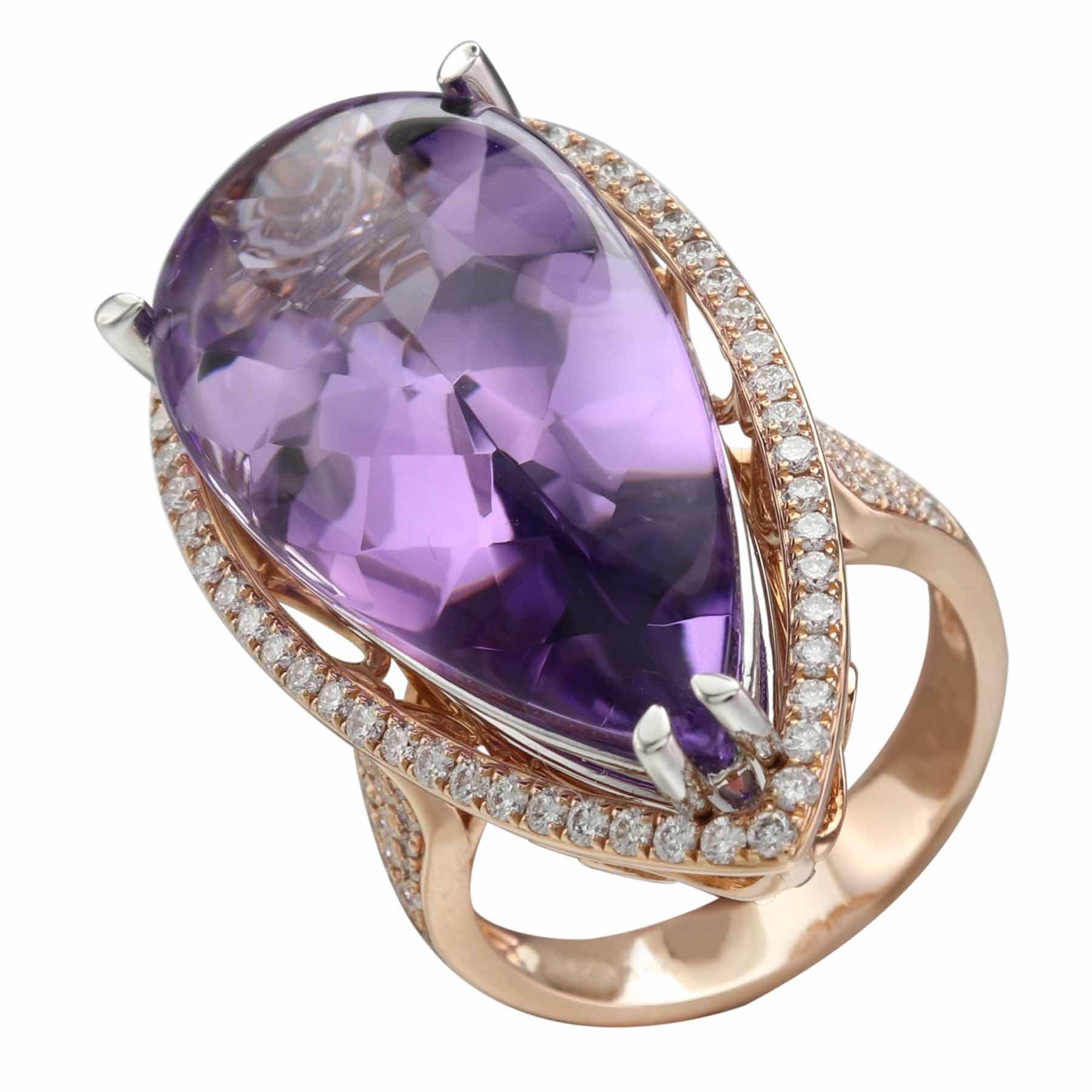 18K ROSE AND WHITE GOLD DIAMOND AND AMETHYST RING