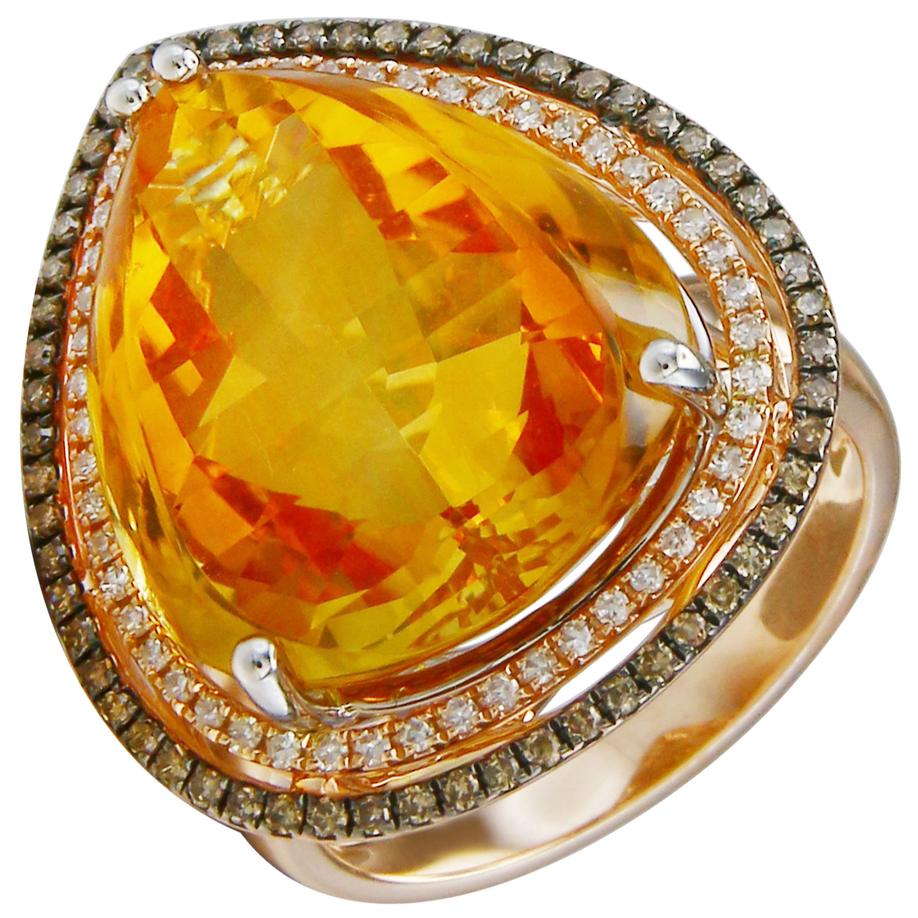 18K WHITE AND ROSE GOLD DIAMOND, BROWN DIAMOND AND CITRINE RING