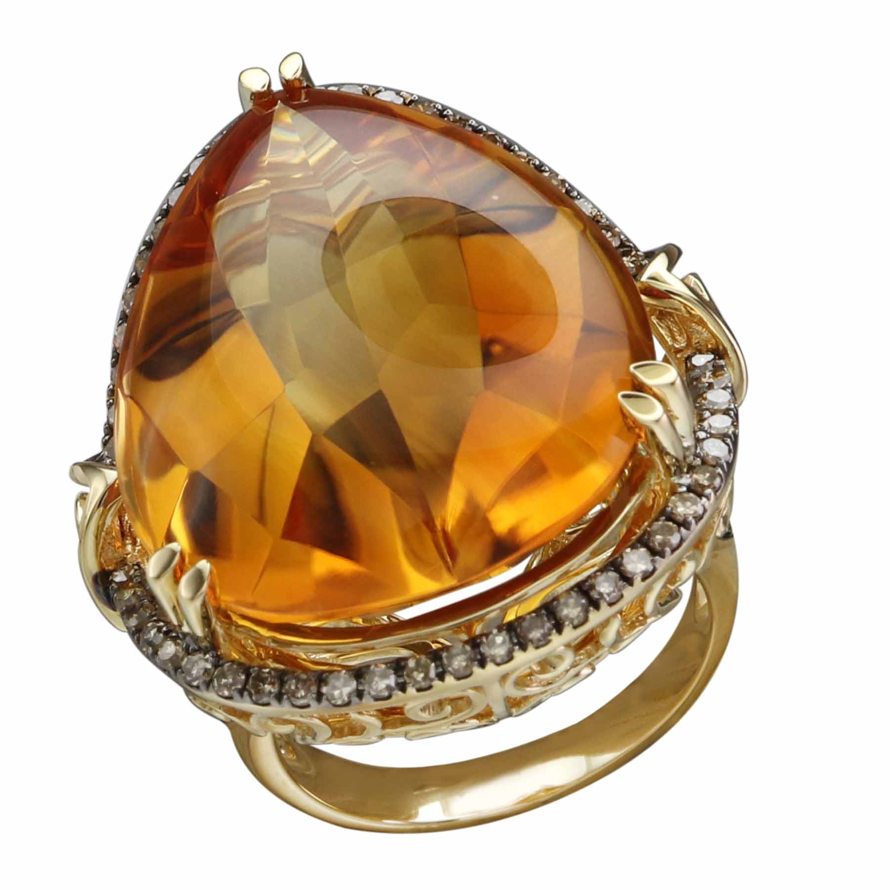 18K YELLOW GOLD BROWN DIAMOND, PINK SAPPHIRE AND CITRINE RING