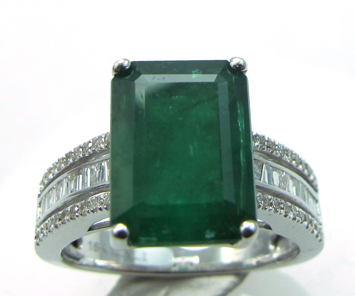 18K WHITE GOLD DIAMOND AND EMERALD RING