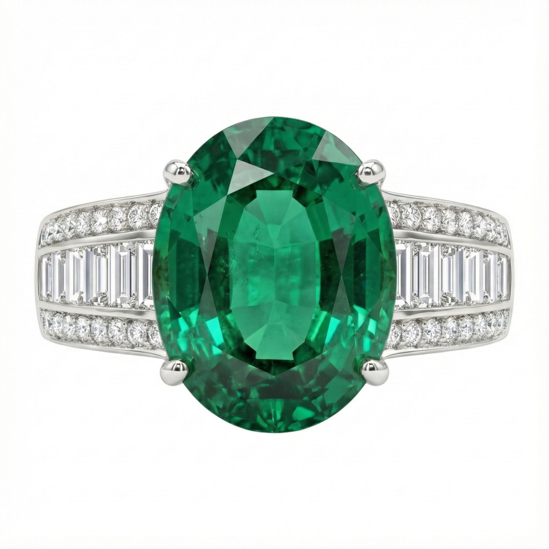 18K WHITE GOLD DIAMOND AND EMERALD RING