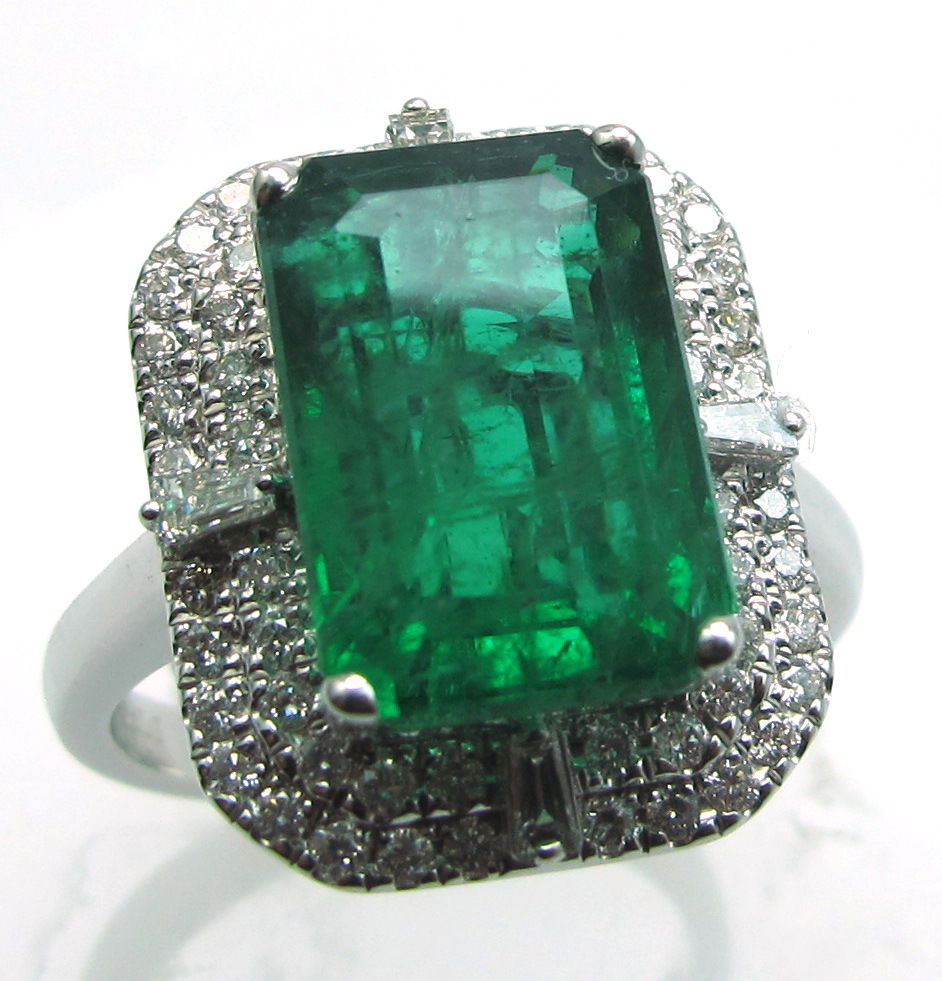 18K WHITE GOLD DIAMOND AND EMEALD RING