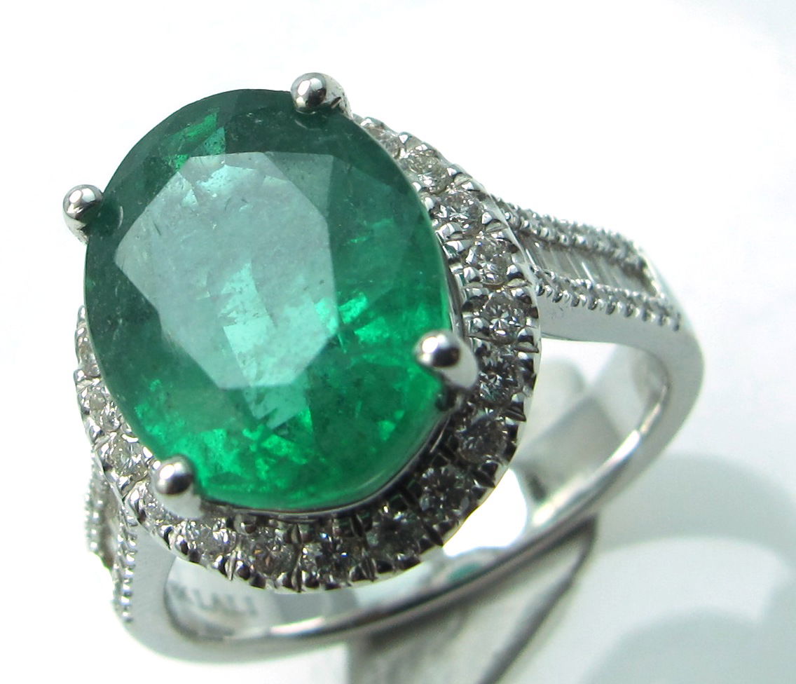 18K WHITE GOLD DIAMOND AND EMERALD RING