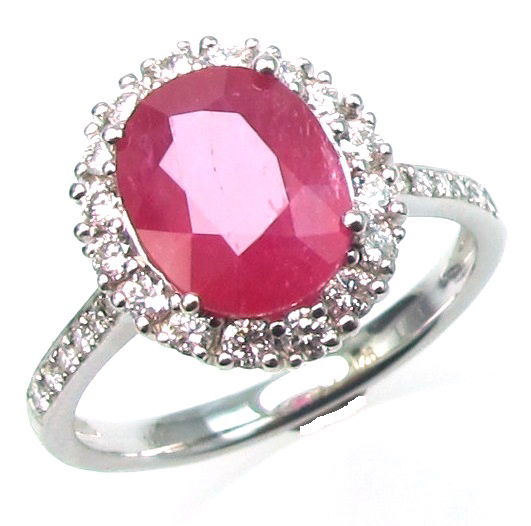 18K WHITE GOLD DIAMOND AND RUBY RING