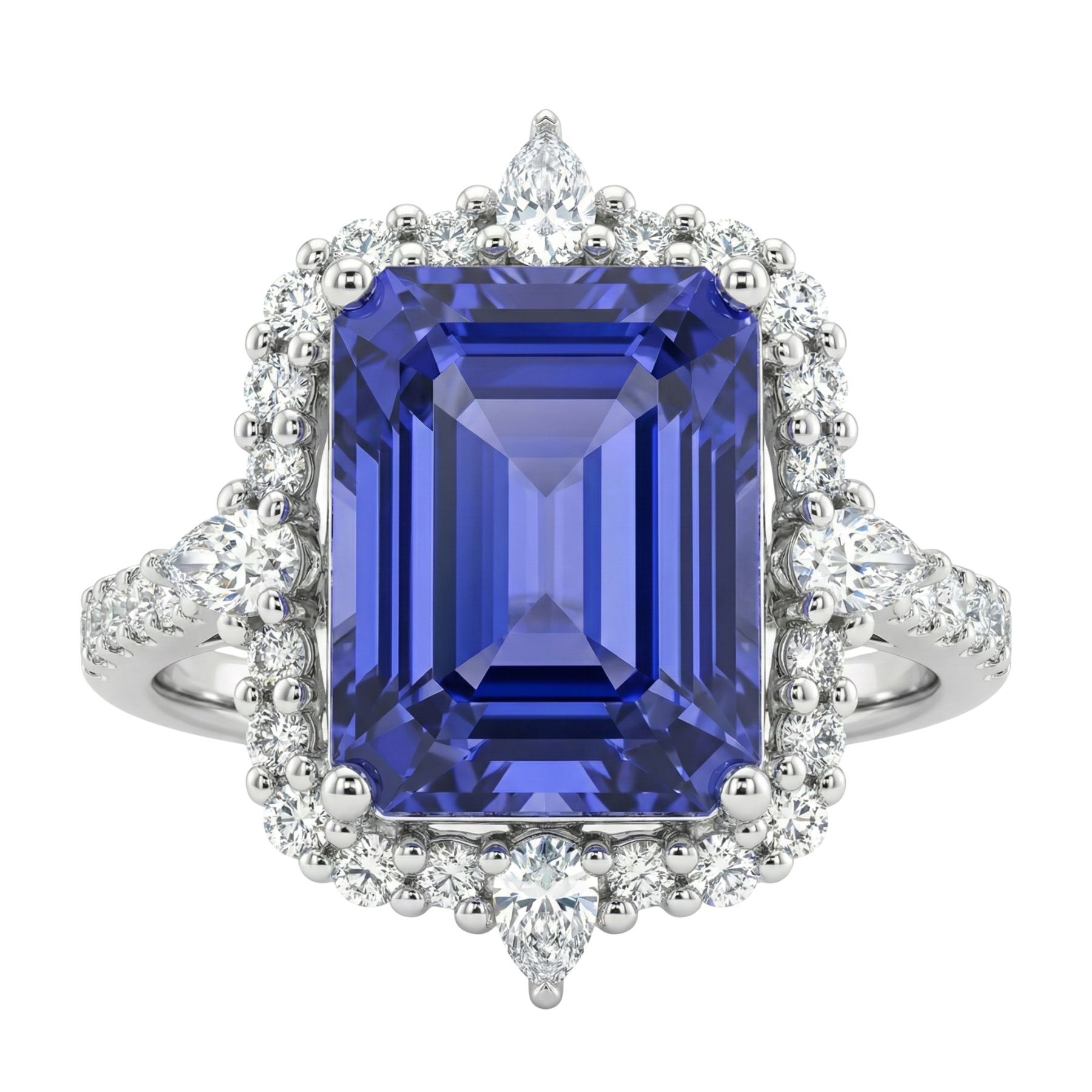 18K WHITE GOLD DIAMOND AND TANZANITE RING