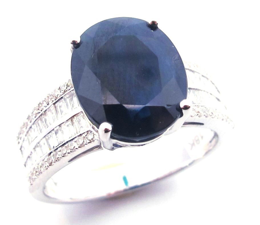 18K WHITE GOLD DIAMOND AND SAPPHIRE RING