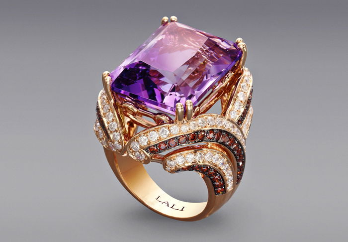 18K ROSE GOLD DIAMOND, BROWN DIAMOND AND AMETHYST RING
