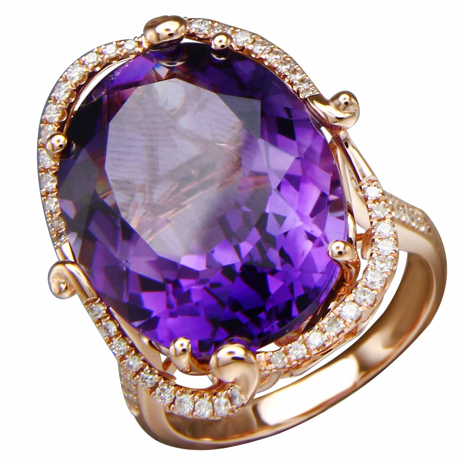 18K ROSE GOLD DIAMOND AND AMETHYST RING
