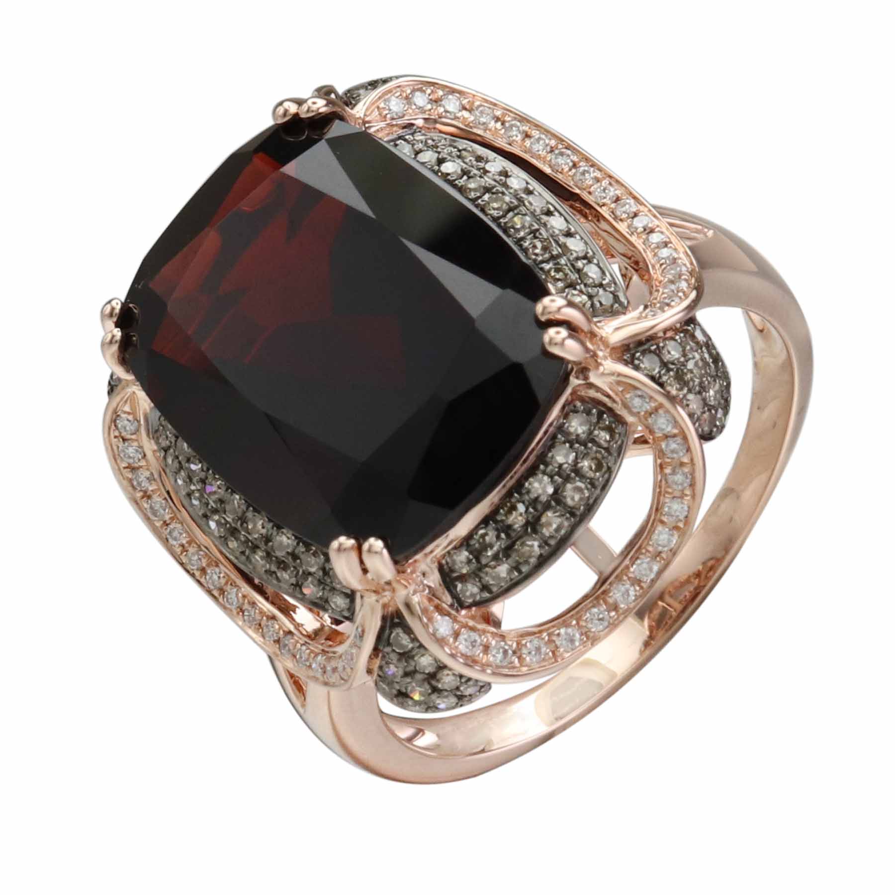 14K ROSE GOLD DIAMOND, BROWN DIAMOND AND GARNET RING
