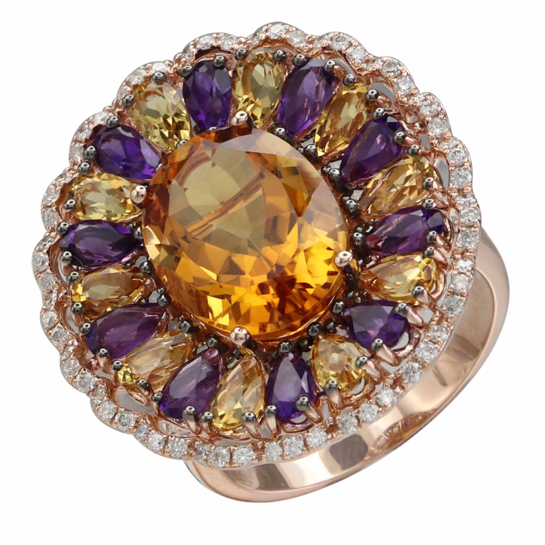 14K ROSE GOLD DIAMOND, MULTICOLOR AND RED CITRINE RING