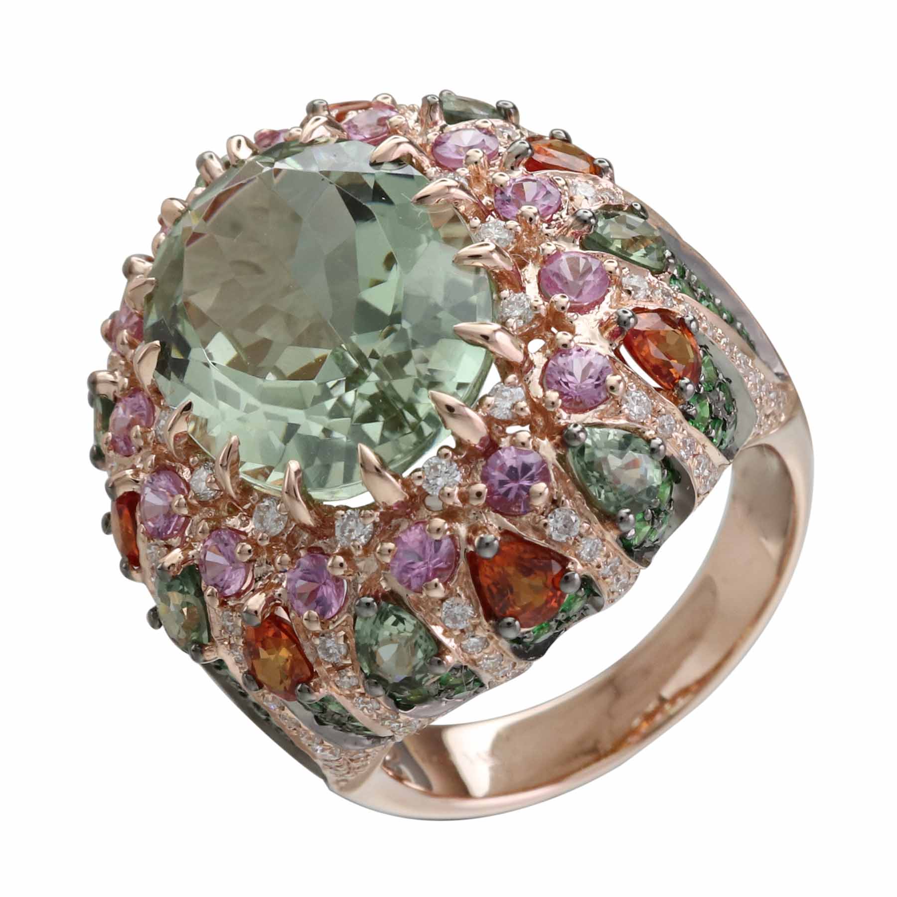 14K ROSE GOLD DIAMOND, MULTICOLOR AND GREEN AMETHYST RING