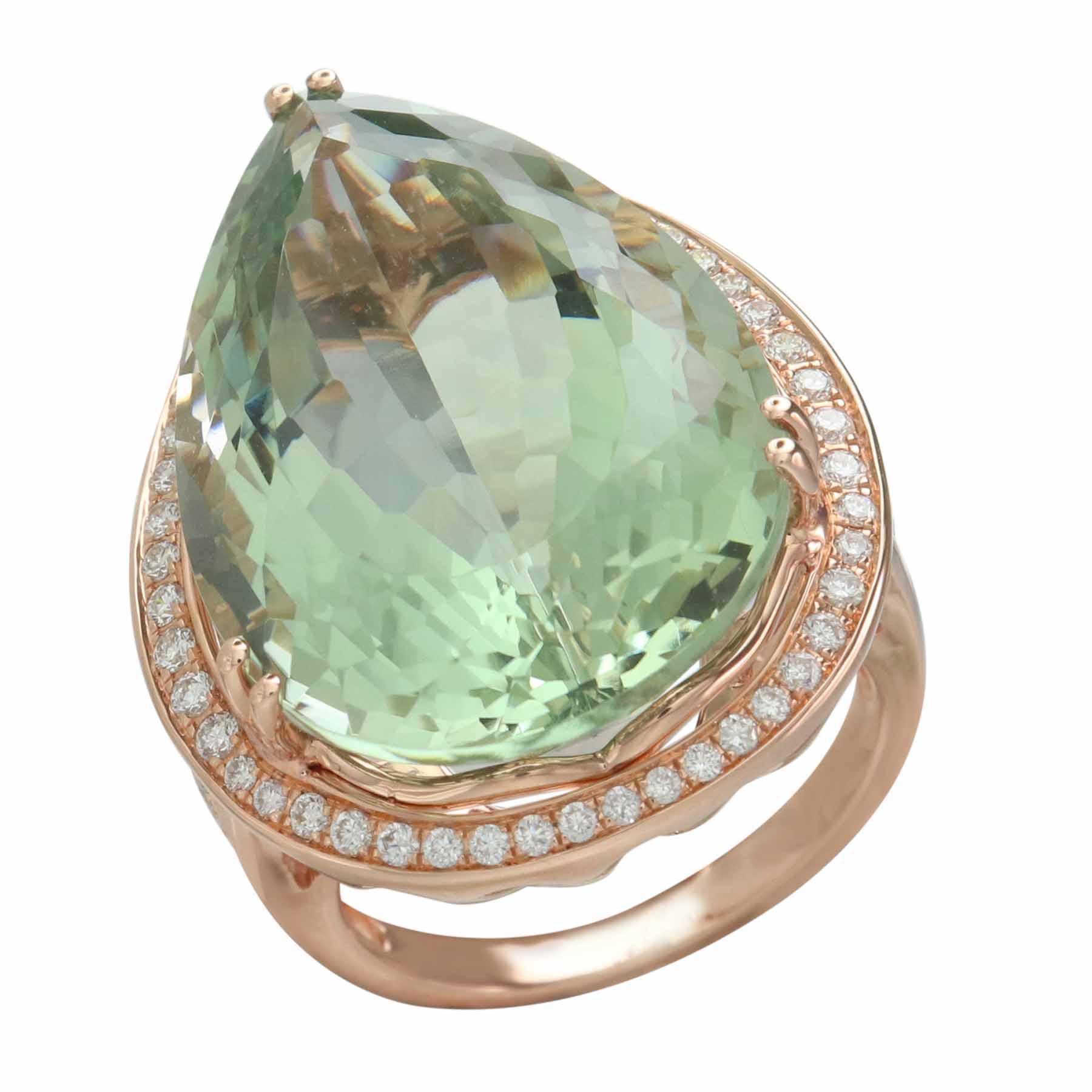 14K ROSE GOLD DIAMOND AND GREEN AMETHYST RING