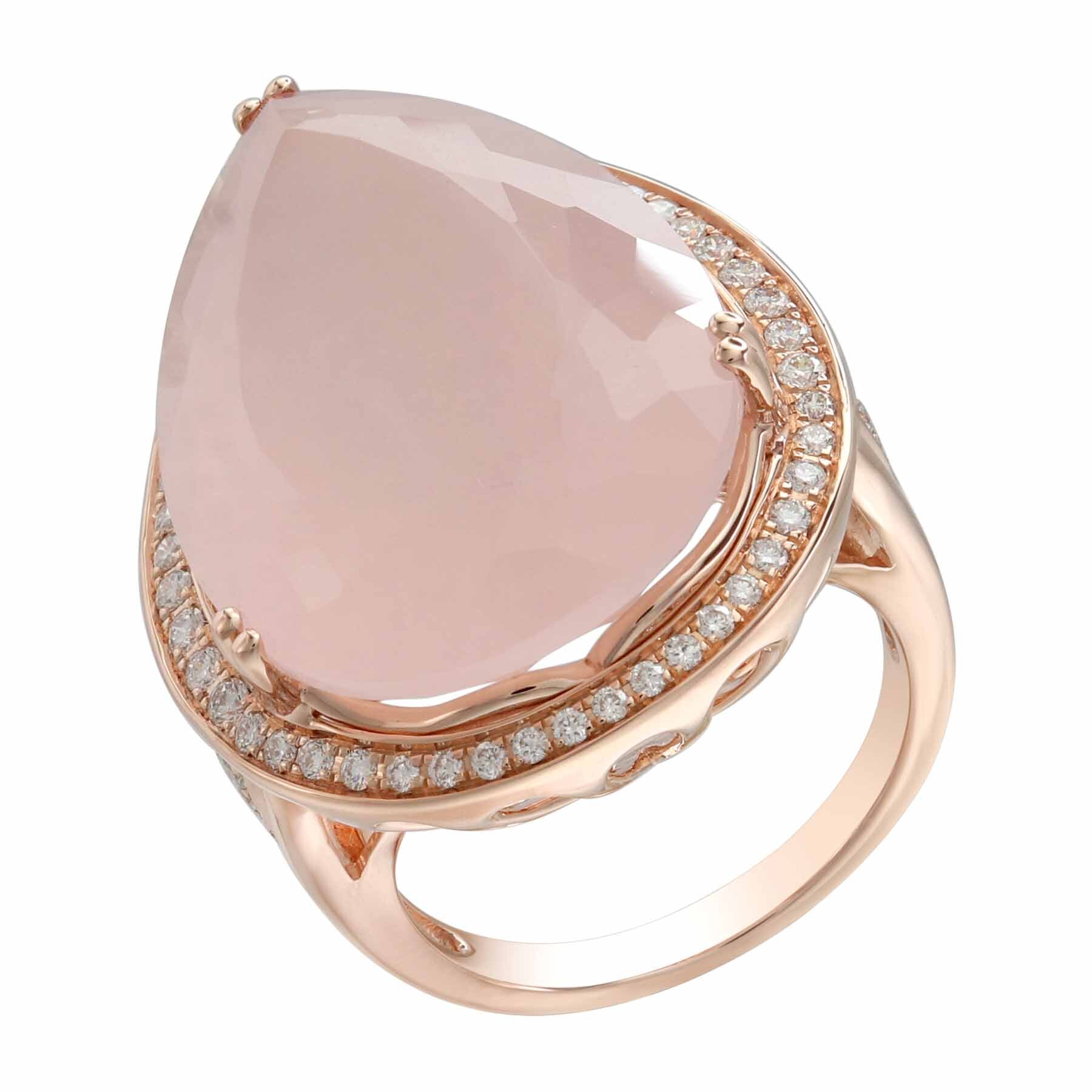 14K ROSE GOLD DIAMOND AND ROSE QUARTZ RING