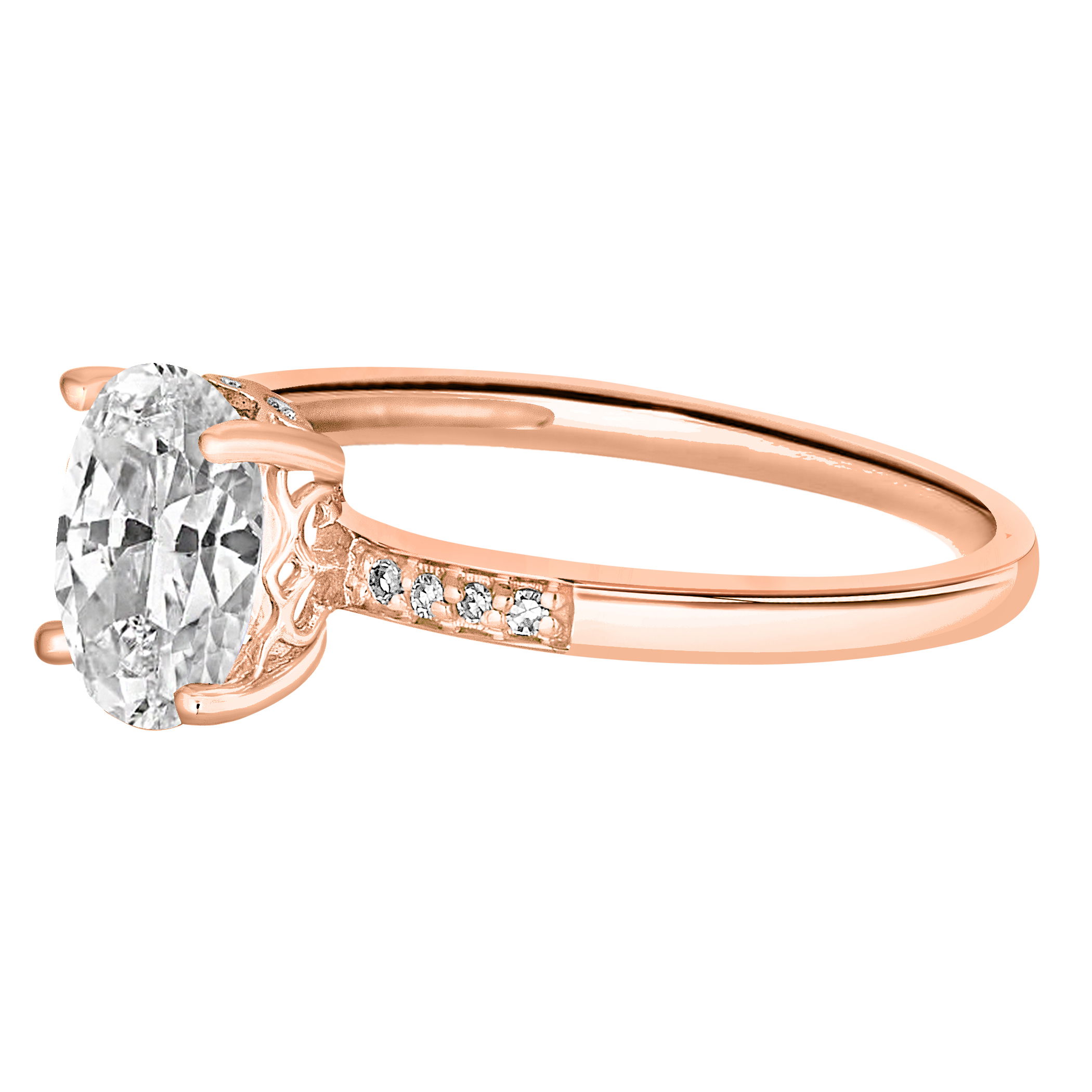Radiant white topaz is set alongside glittering diamonds in this refined rose gold ring.• 8x6mm Oval White Topaz Gemstone• 14K Rose Gold Setting• Diamond Accents• Semi Precious Birthstone Collection