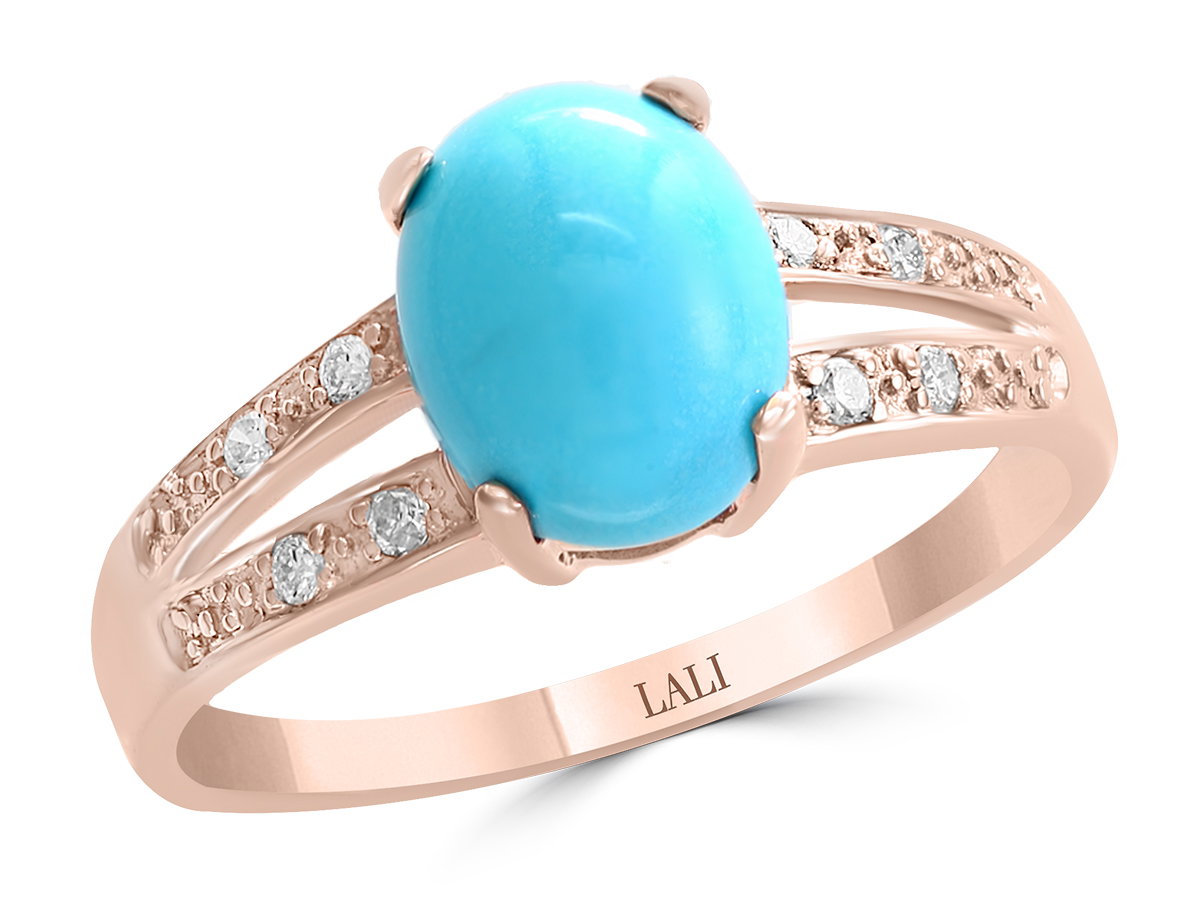 14K ROSE GOLD DIAMOND AND TURQUOISE RING