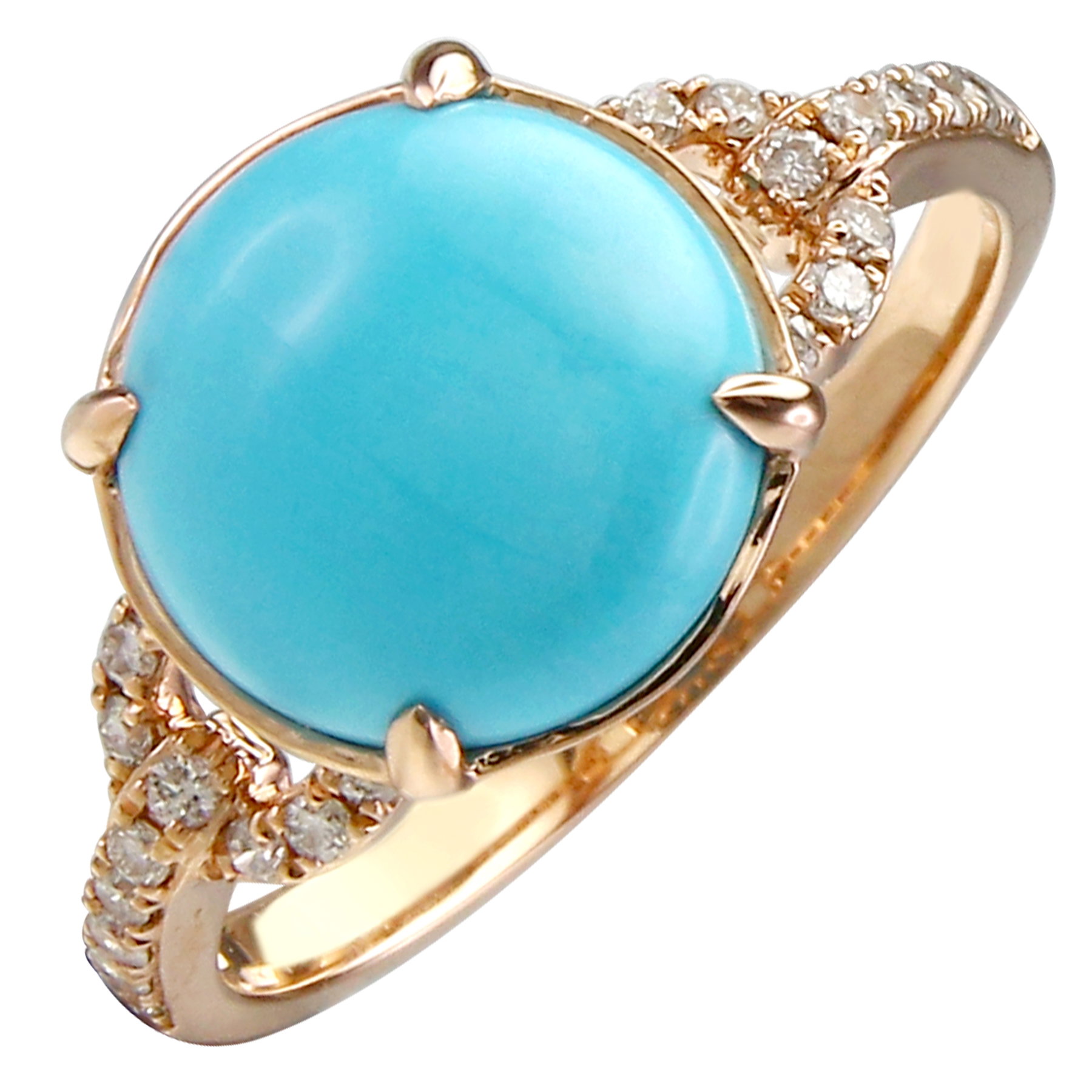 14K ROSE GOLD DIAMOND AND TURQUOISE RING