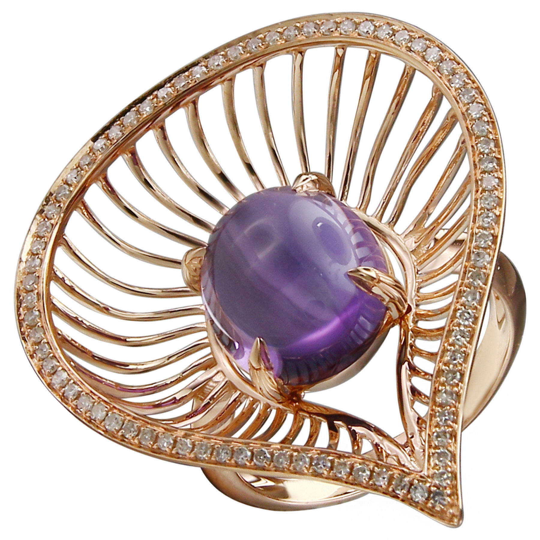 14K ROSE GOLD DIAMOND AND AMETHYST RING