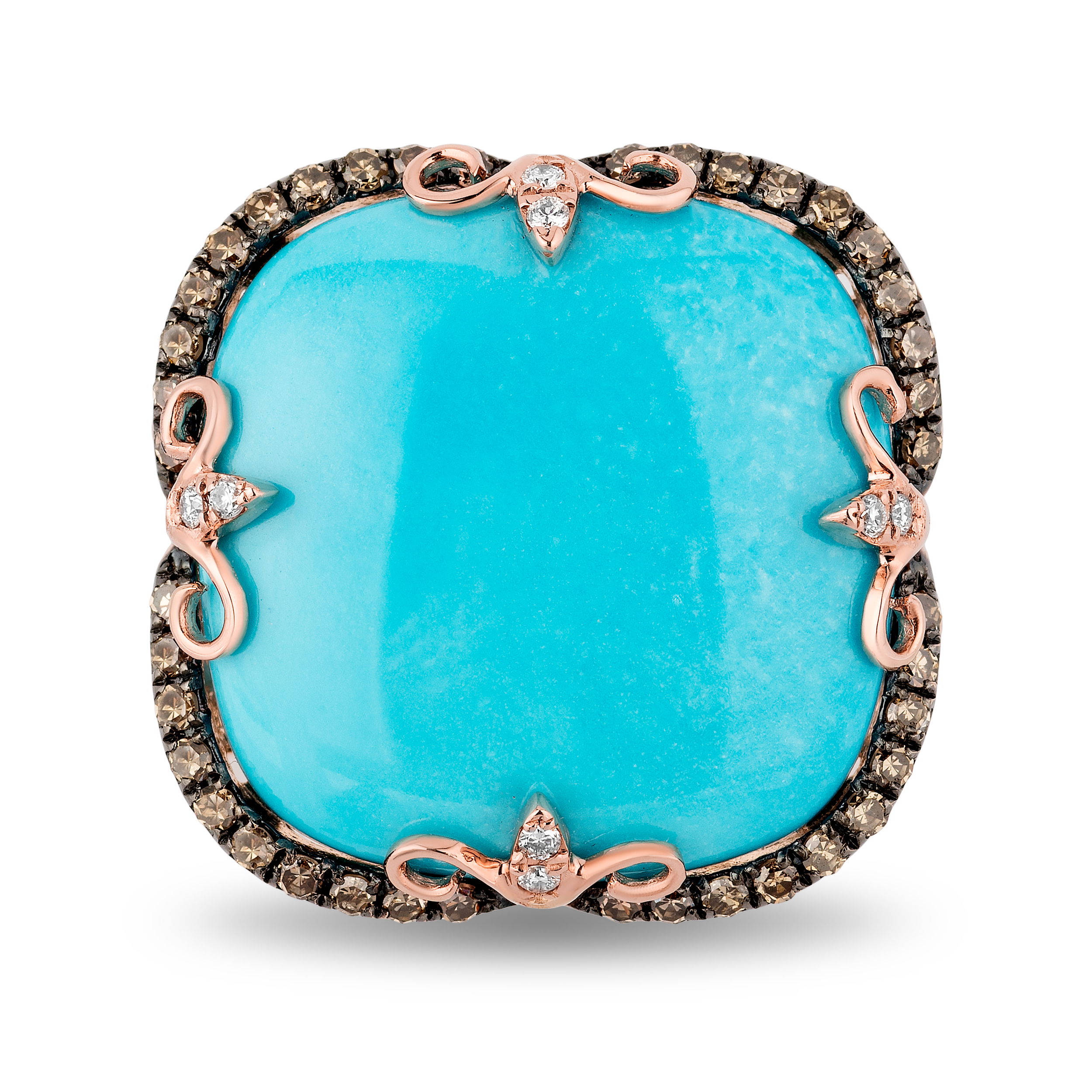 14K ROSE GOLD DIAMOND, BROWN DIAMOND AND TURQUOISE RING