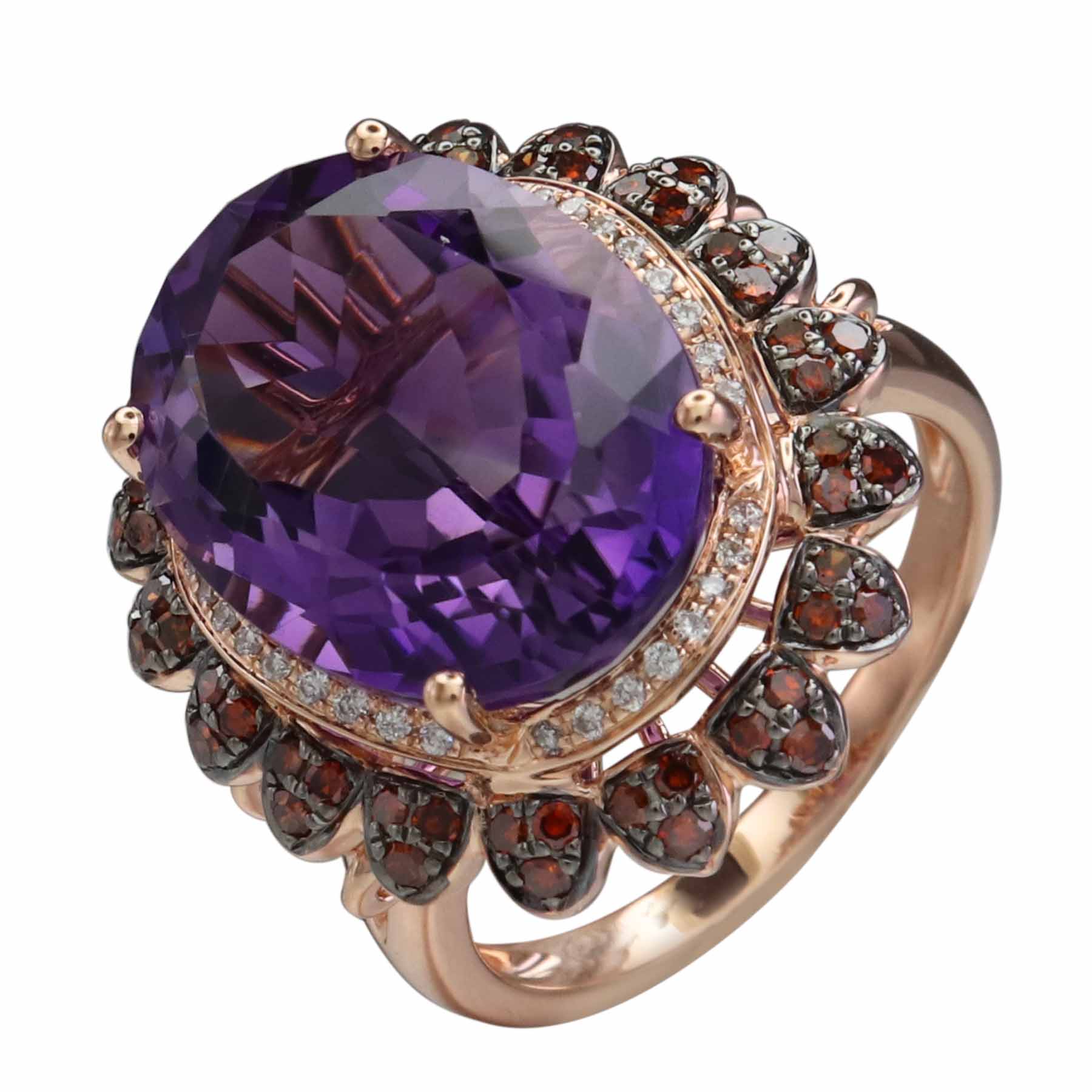 14K ROSE GOLD DIAMOND, TREATED RED DIAMOND AND AMTEHYST RING