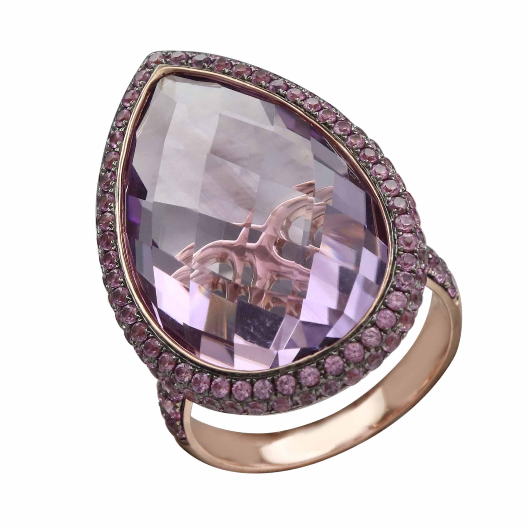 14K ROSE GOLD PINK SAPPHIRE AND PINK AMETHYST RING