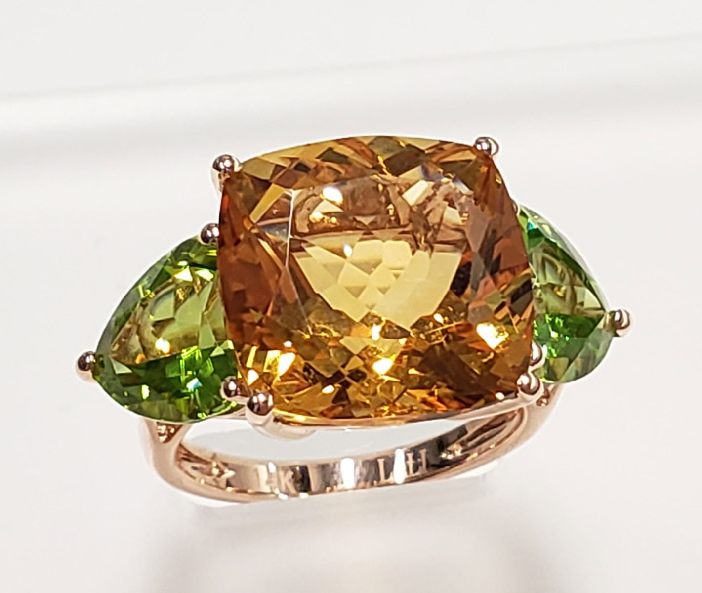 14K ROSE GOLD PERIDOT AND CITRINE RING