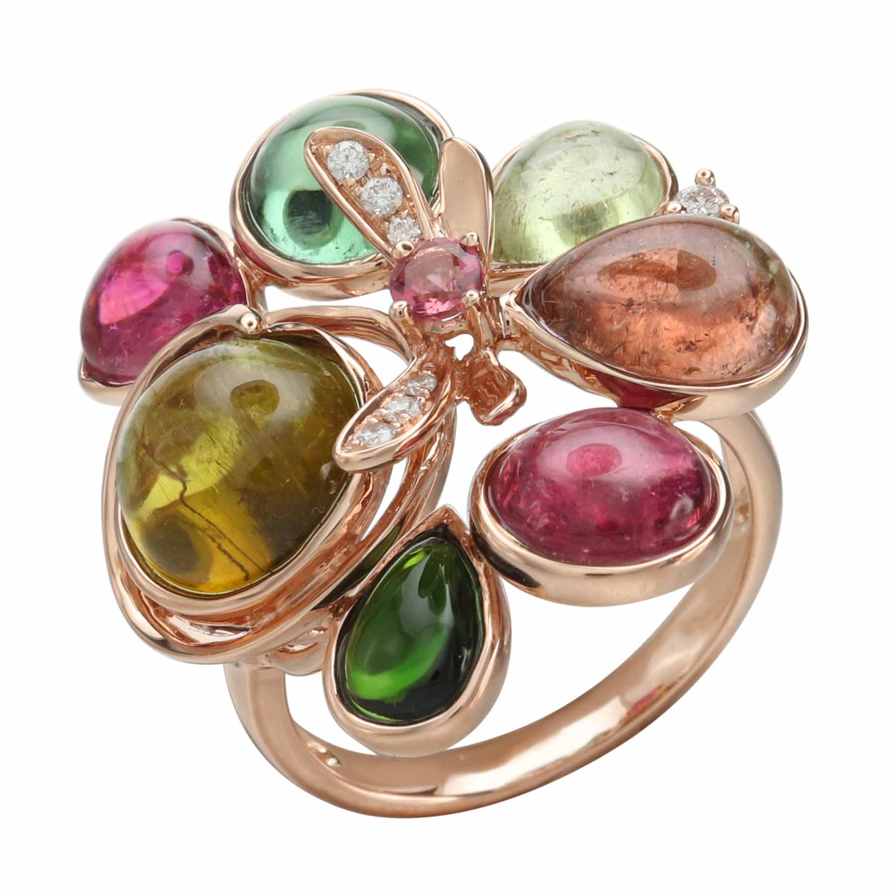 14K ROSE GOLD DIAMOND AND MULTI COLOR TOURMALINE RING