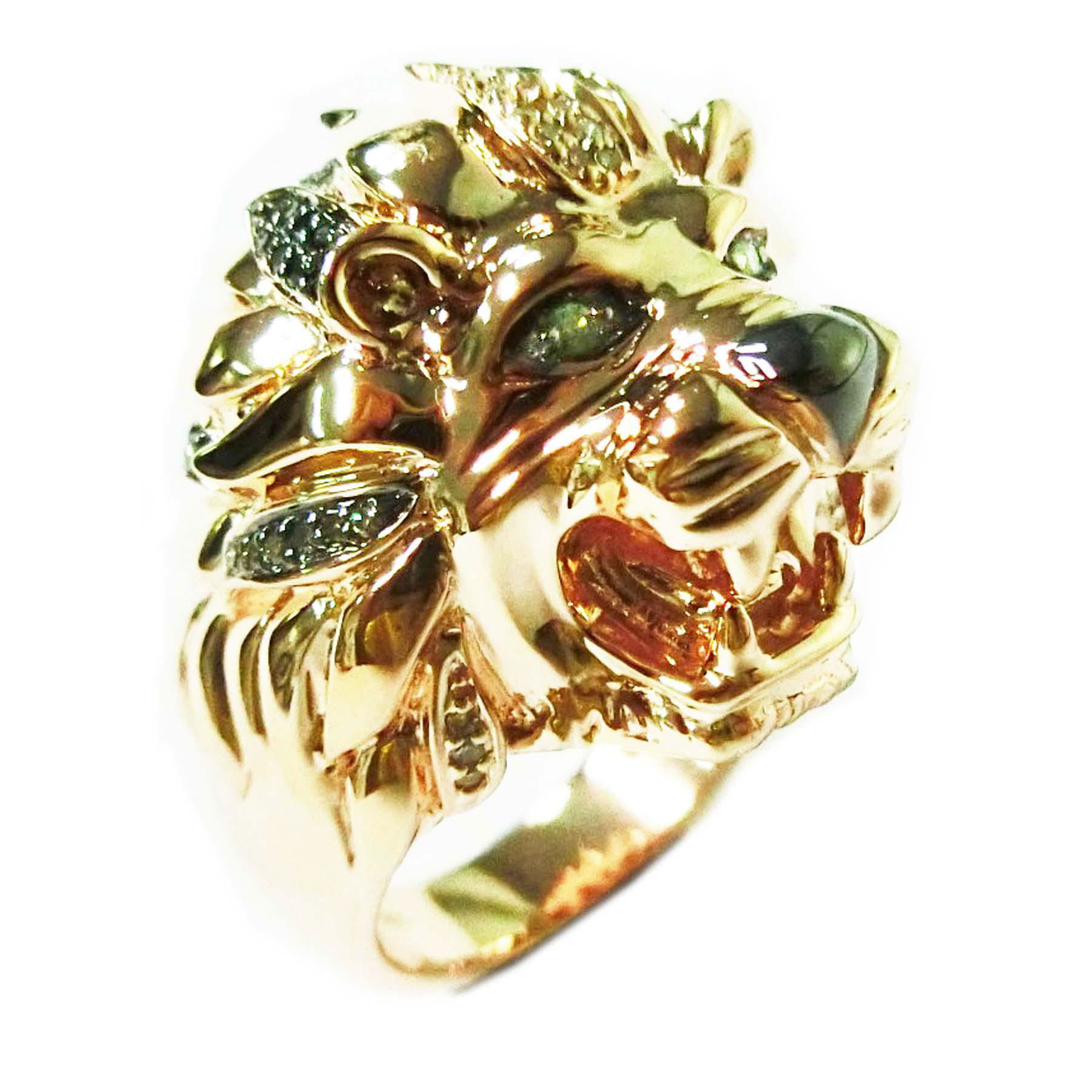14K ROSE GOLD DIAMOND, BROWN DIAMOND, TREATED BLACK DIAMOND AND TSAVORITE RING