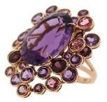 14K ROSE GOLD PINK TOURMALINE, RHODOLITE AND AMETHYST RING