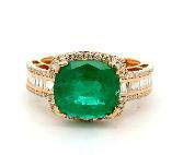 14K ROSE GOLD DIAMOND AND EMERALD RING