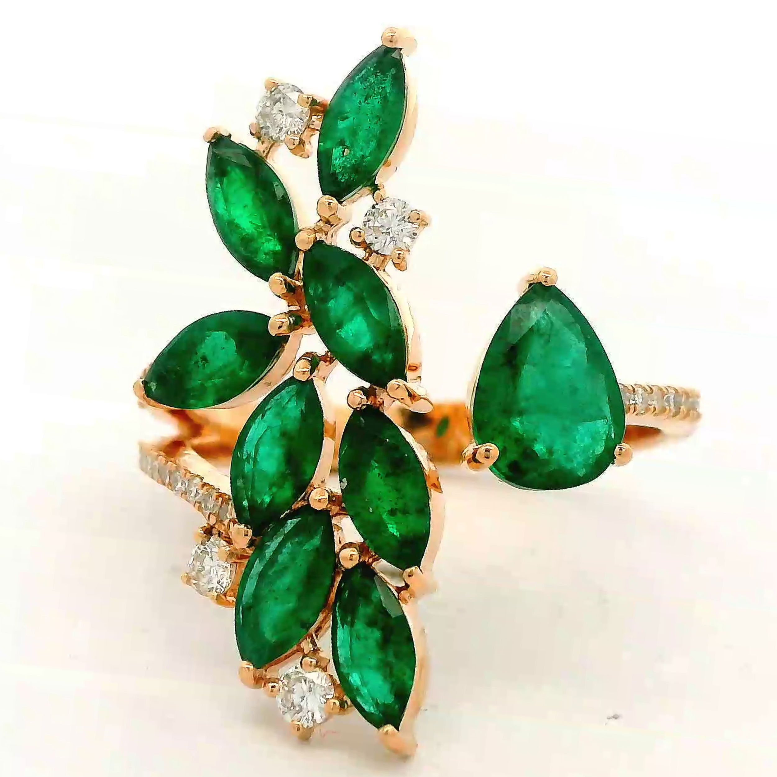 14K ROSE GOLD DIAMOND AND EMERALD RING