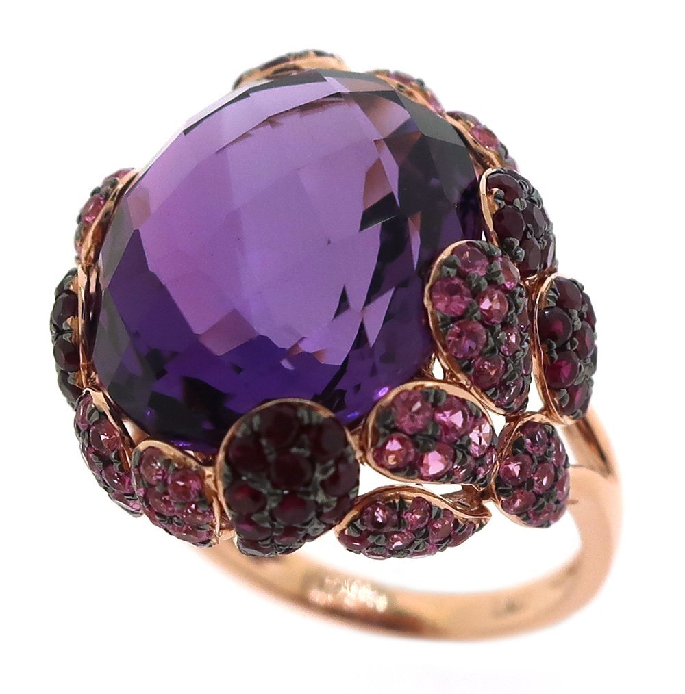 14K ROSE GOLD PINK SAPPHIRE, IGI CERTIFIED RUBY AND AMETHYST RING