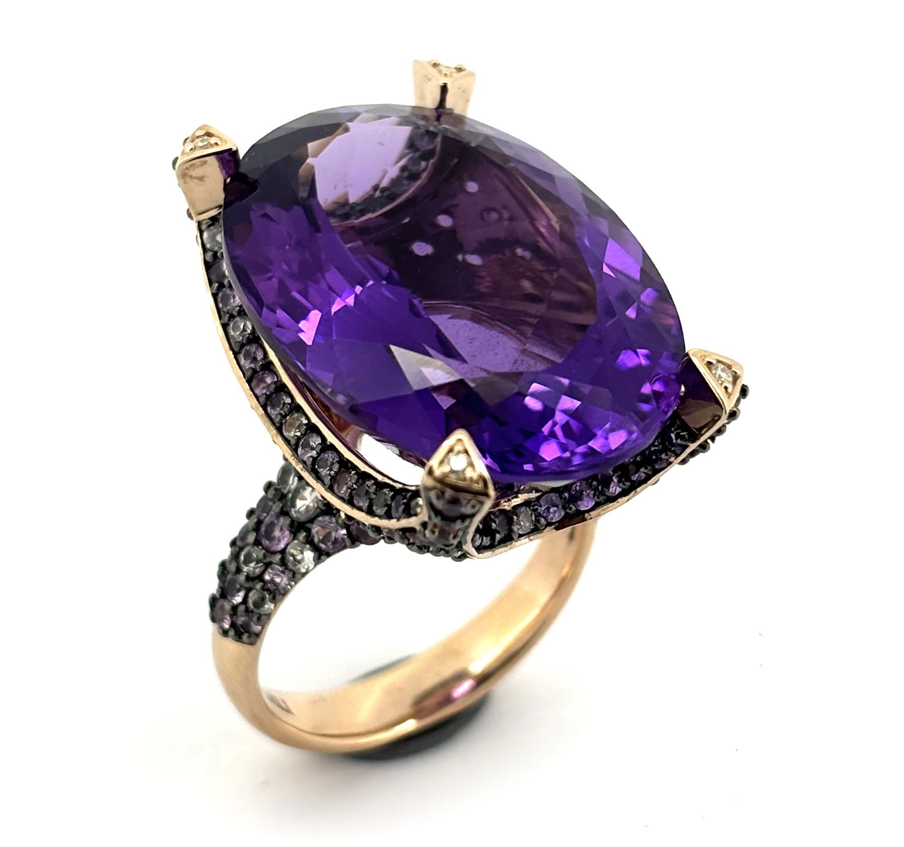 14K ROSE GOLD DIAMOND, MULTICOLOR SAPPHIRE RING