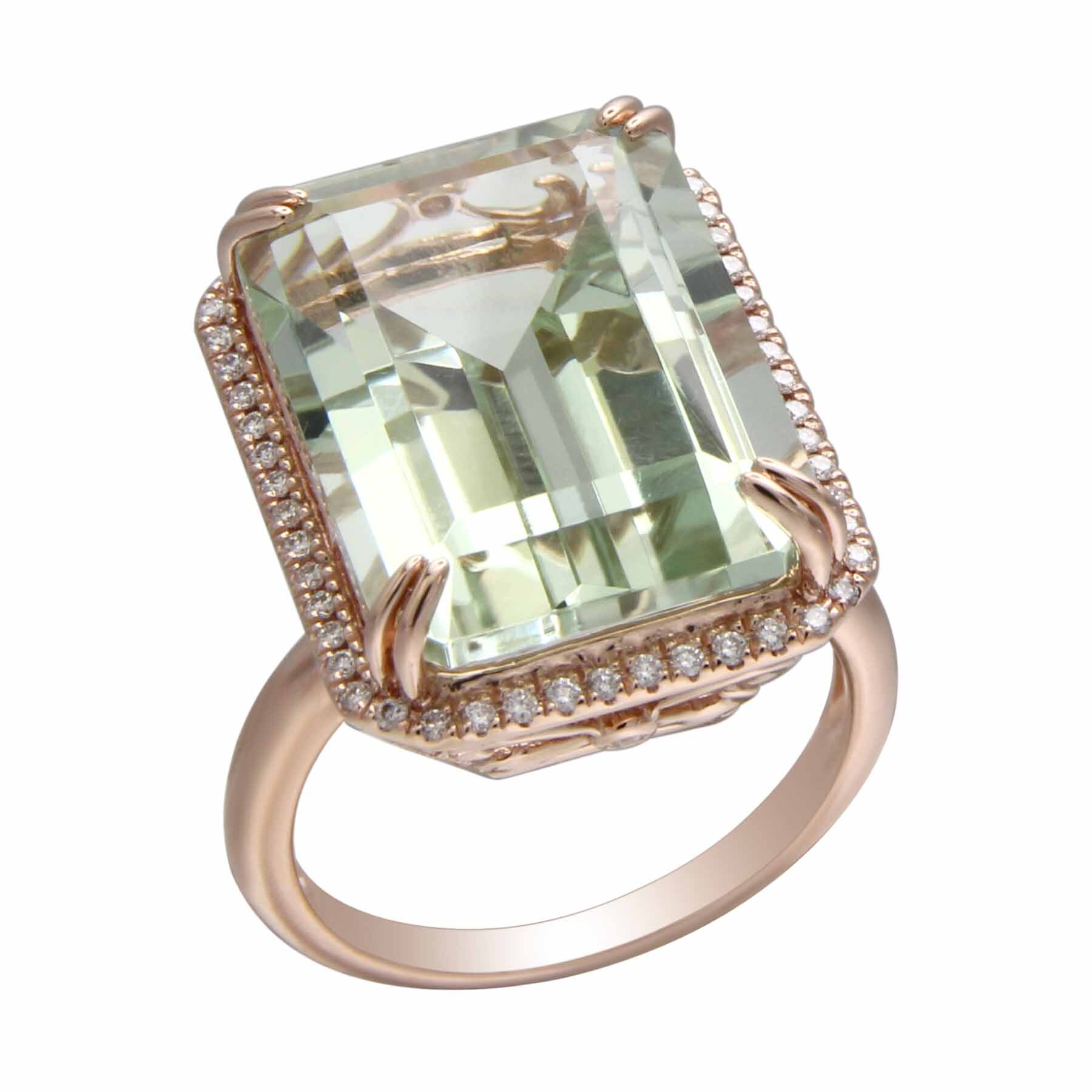 14K ROSE GOLD DIAMOND AND GREEN AMETHYST RING