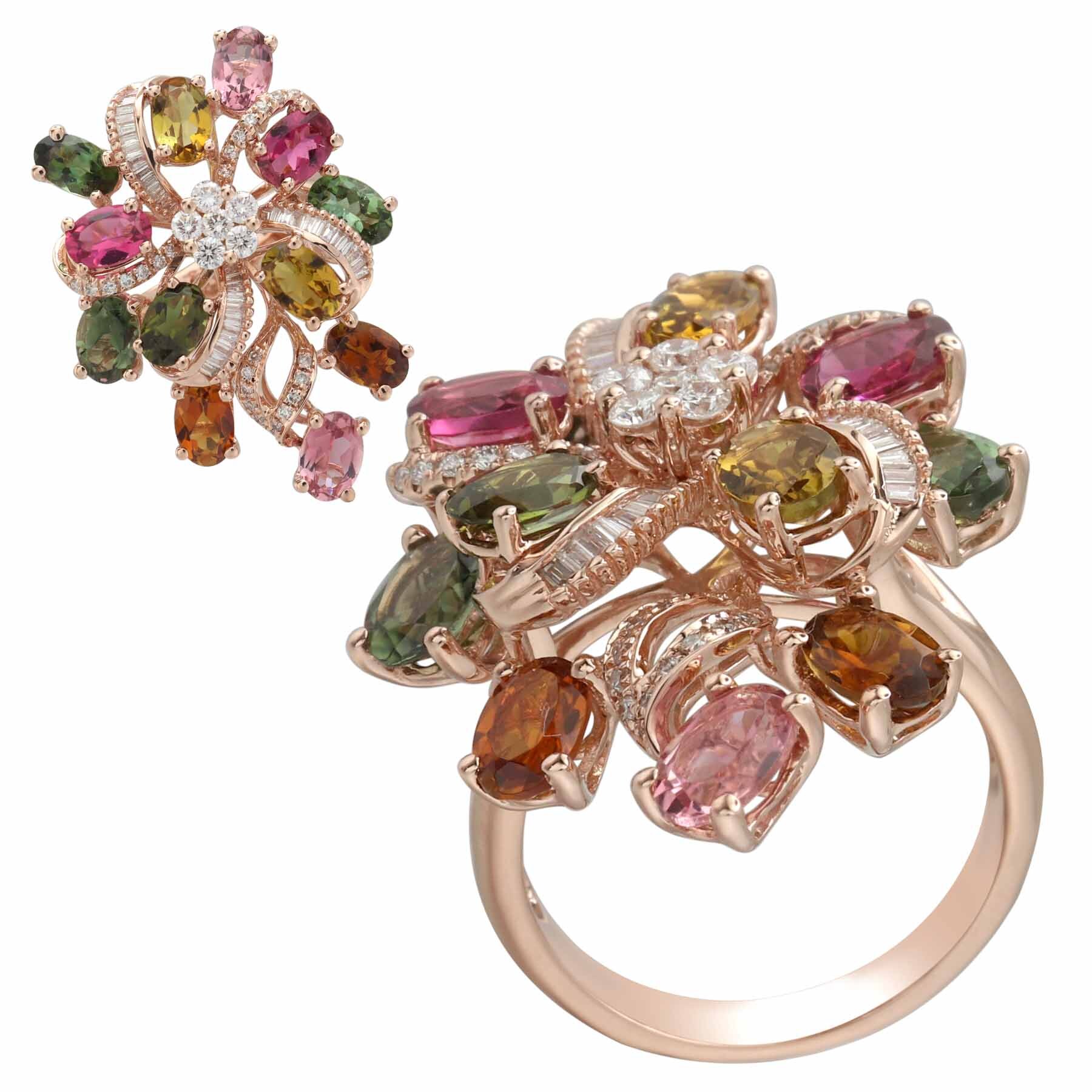14K ROSE GOLD DIAMOND AND MULTI COLOR TOURMALINE RING