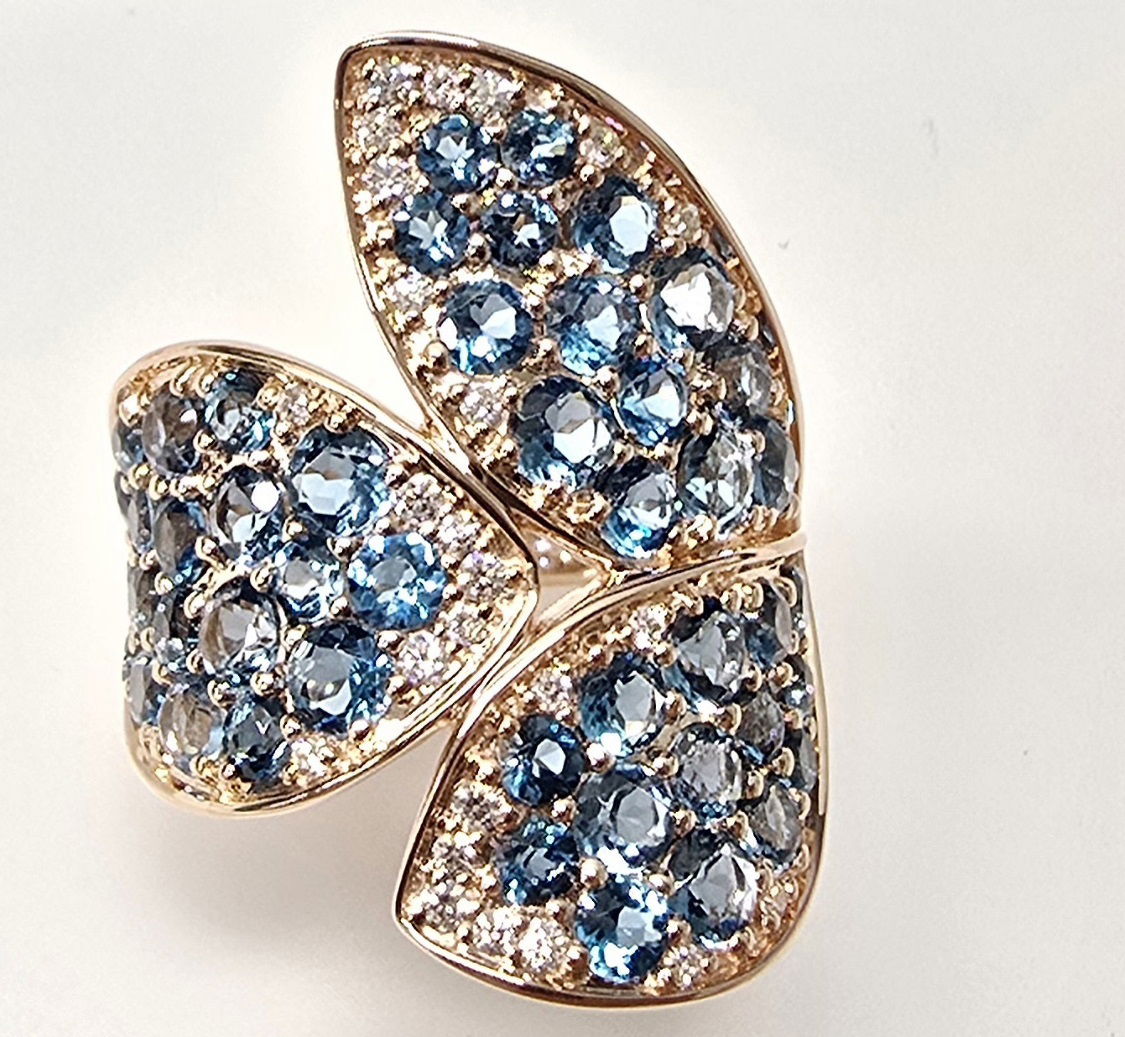 14K ROSE GOLD DIAMOND AND LONDON BLUE TOPAZ RING