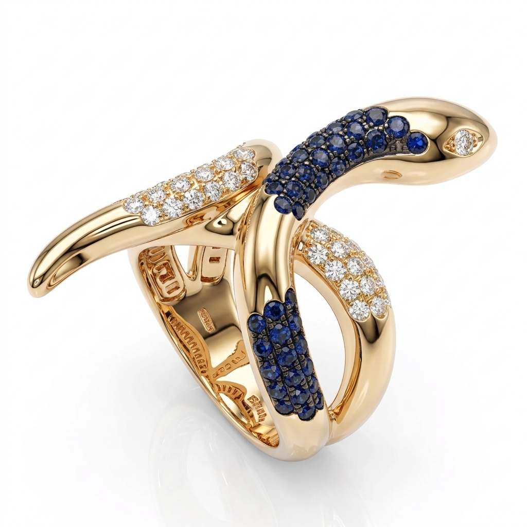14K ROSE GOLD DIAMOND AND SAPPHIRE SNAKE RING