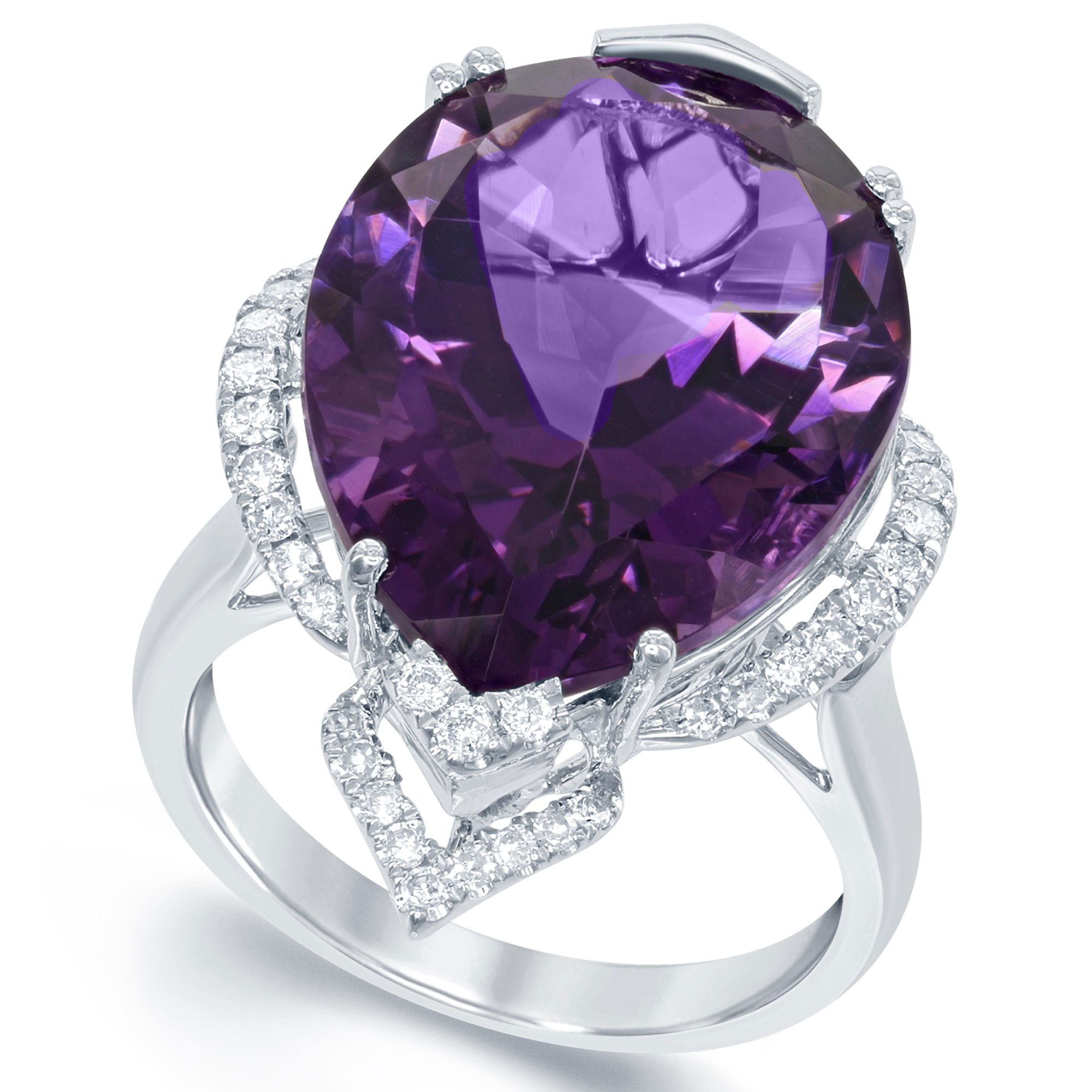 14K WHITE GOLD DIAMOND AND AMETHYST RING